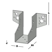 Balkdrager met zijflenzen, voor het bevestigen van dwarsbalken tegen een muur of tegen een andere houten balk. Deze balkdrager wordt ook toegepast voor het maken van ravelingen in vloeren en daken. Leverbaar voor de gangbare kopmaten van zowel geschaafd als ongeschaafd hout.