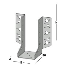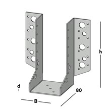 Balkdrager met zijflenzen, voor het bevestigen van dwarsbalken tegen een muur of tegen een andere houten balk. Deze balkdrager wordt ook toegepast voor het maken van ravelingen in vloeren en daken. Leverbaar voor de gangbare kopmaten van zowel geschaafd als ongeschaafd hout.