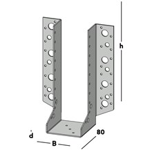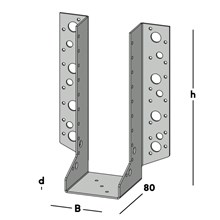 Balkdrager met zijflenzen, voor het bevestigen van dwarsbalken tegen een muur of tegen een andere houten balk. Deze balkdrager wordt ook toegepast voor het maken van ravelingen in vloeren en daken. Leverbaar voor de gangbare kopmaten van zowel geschaafd als ongeschaafd hout.