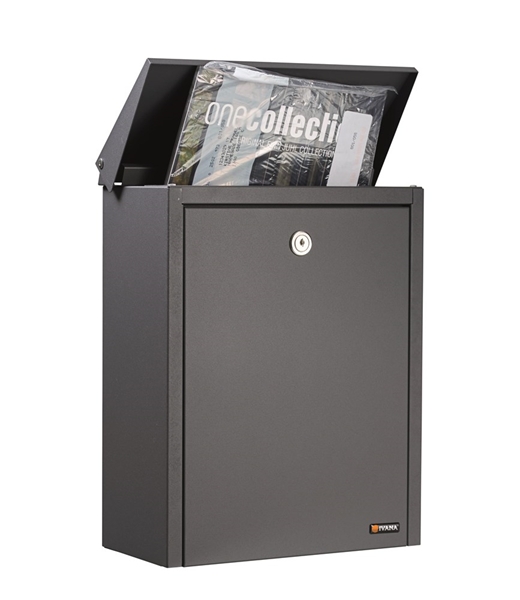 Deze brievenbus heeft een postinworp via de bovenzijde en uitname via de klep aan de voorzijde. De brievenbus wordt standaard geleverd met een automatenslot, inclusief 2 sleutels. Geschikt voor wandmontage of plaatsing op statief.