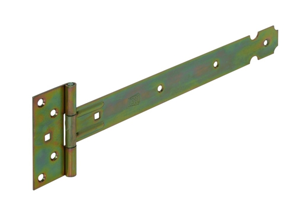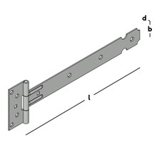 Scharnier met aan één zijde een verlengd blad. Geschikt voor poorten, luiken en deuren.