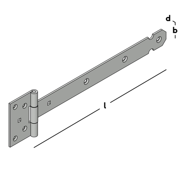 Zwaar scharnier met aan één zijde een verlengd blad. Geschikt voor poorten, luiken en deuren.