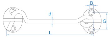 Deze kajuithaak is messing vernikkeld en dus corrosiebestendig. De haak wordt geleverd inclusief 2 ovale schroefplaten met elk 2 schroefgaten. De haak wordt gebruikt voor het afsluiten van ramen, deuren, etc.
