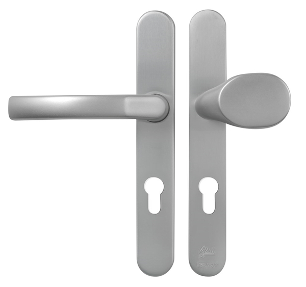 Aluminium gegoten veiligheidssmaldeurgarnituren met aluminium klikschild. Tevens geschikt voor renovatie door de gepatenteerde verstelbare nokken.