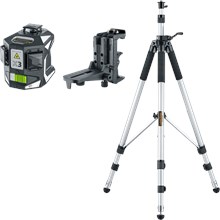 Deze automatische kruislijnlaser genereert één horizontale en twee verticale lasercirkels. Het precieze toestel is geschikt voor het uitlijnen van horizontalen, verticalen en hellingen, alsook voor het loden. Dankzij de groene lasertechnologie wordt een uitstekende zichtbaarheid geboden. Optische signalen waarschuwen de gebruiker als het nivelleerbereik wordt verlaten. Met de magnetische klem- en wandhouder kan de laser veelzijdig horizontaal en verticaal worden bevestigd, bijvoorbeeld aan droogbouwprofielen en balken. De krachtige lithium-ion-accu zorgt voor een lange gebruiksduur, die met de extra accu nog kan worden verdubbeld. Voor toepassingen buiten is de geïntegreerde handontvangermodus geschikt in combinatie met een optionele laserontvanger. |Met dit hoogwaardige aluminiumstatief kan het meettoestel onafhankelijk van de hoedanigheid van de ondergrond veilig en exact worden geplaatst. Hij beschikt over een krukslag, combi-punten (rubber/staal) en uittrekbare statiefpoten.