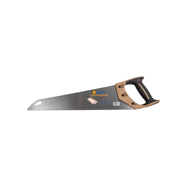 Speciale handzaag voor laminaatvloeren met universele vertanding (7TPI). Voorzien van 90° en 45° aftekenhoeken met een totale zaaglengte van 450mm. Het handvat bestaat vrijwel volledig uit biobased materialen (houtvezels en bio-plastic). De C02-voetafdruk reduceren we hiermee aanzienlijk. Het handvat is voorzien van een softgrip greep en is door middel van schroeven aan het blad bevestigd.