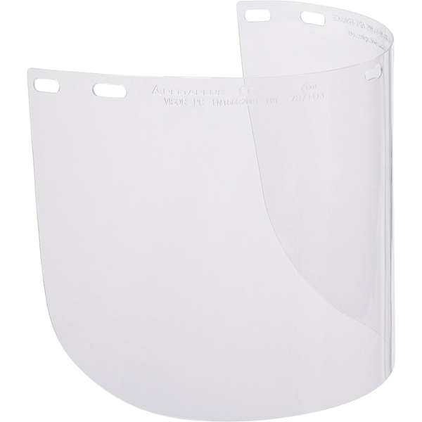 Kit met 2 kleurloze polycarbonaatschermen met plastic boord. Universele bevestiging. Klipsbaar op schermdragers BALBI2 - PICO2 - VISOR HOLDER. 39 x 20 cm. Polycarbonaat