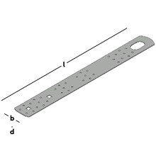 Metalen strip met een oog en schroefgaten, bedoeld als hijsvoorziening voor houten kozijnen, puien en elementen. Het hijsen dient plaats te vinden conform de richtlijnen van de SHR.