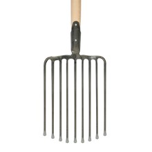 Deze Ivana puinvork gebruikt u voor het opruimen van puin en heeft 9 tanden die aan onderkant bot zijn zodat het puin niet aan de vork blijft steken. De essenhouten steel van deze puinvork is 85cm lang en heeft een D-greep. Met een D-greep kunt u de vork tijdens het opscheppen of aflaten makkelijk kantelen. Verder is de steel gewaxt en is hierdoor langdurig beschermd tegen aantasting door vuil en/of water. Wij adviseren om de vork na gebruik altijd schoon te maken voor een langdurig behoud van kwaliteit.
