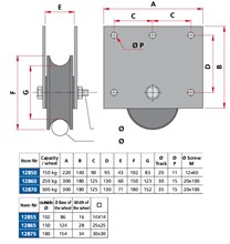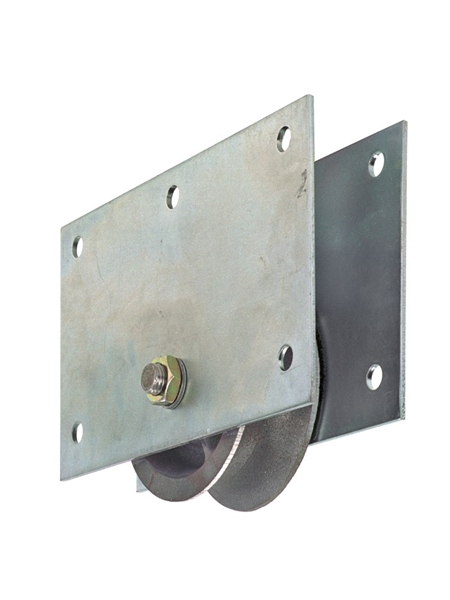 Zware gietijzeren rol met ronde groef voor onderlopende deuren en hekken.