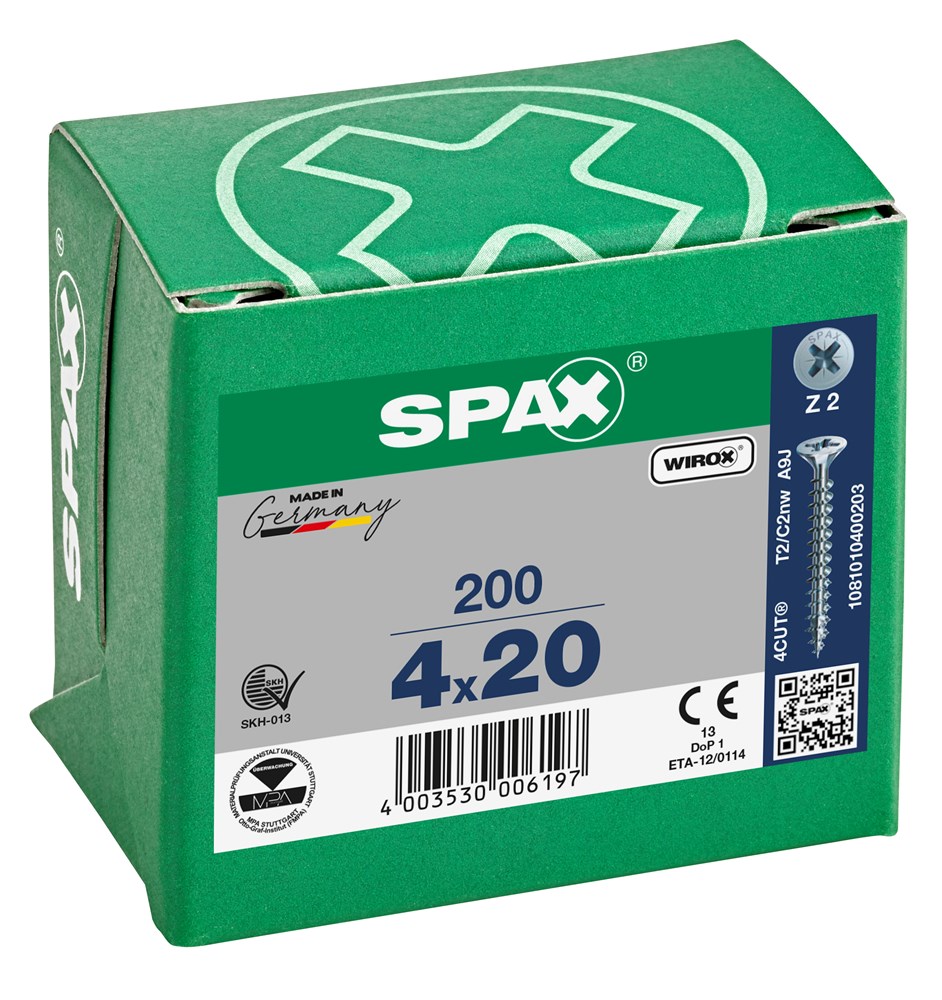 ABC SPAX SPAANPLAATSCHROEF GEGALV PK PZD 4X20