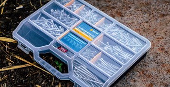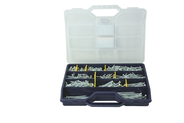 Handige assortimentsdoos gevuld met verschillende maten Spaanplaatschroeven.
