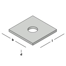 Vlakke vierkante plaat met gat voor gebruik in zware bout/moerverbindingen bij bijvoorbeeld houtverbindingen en betonbekistingen.
