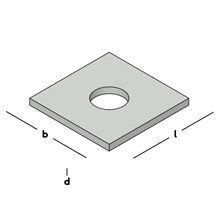 Vlakke vierkante plaat met gat voor gebruik in zware bout/moerverbindingen bij bijvoorbeeld houtverbindingen en betonbekistingen.