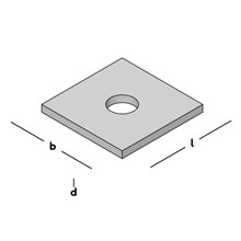 Vlakke vierkante plaat met gat voor gebruik in zware bout/moerverbindingen bij bijvoorbeeld houtverbindingen en betonbekistingen.