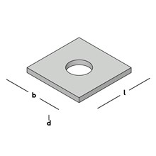 Vlakke vierkante plaat met gat voor gebruik in zware bout/moerverbindingen bij bijvoorbeeld houtverbindingen en betonbekistingen.