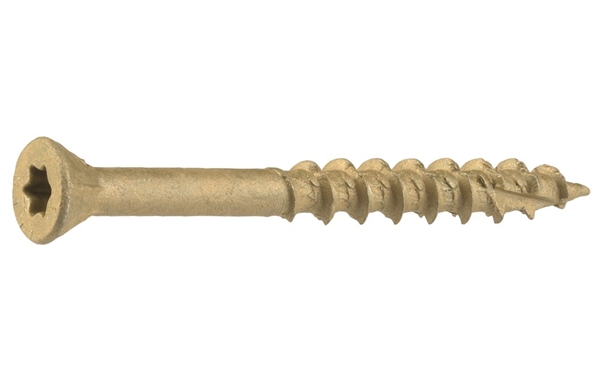 Een gehard stalen schroef met een bronskleurige Anti Roest coating. Deze voldoet aan de hoogste norm voor corrosiebestendigheid: C4. De schroef is uitgevoerd met een speciale 60°-kop en voorzien van freesribben zodat hij direct in het materiaal verzinkt. Tevens is de Ivana vlonderschroef voorzien van een zelfborende parabolische punt.