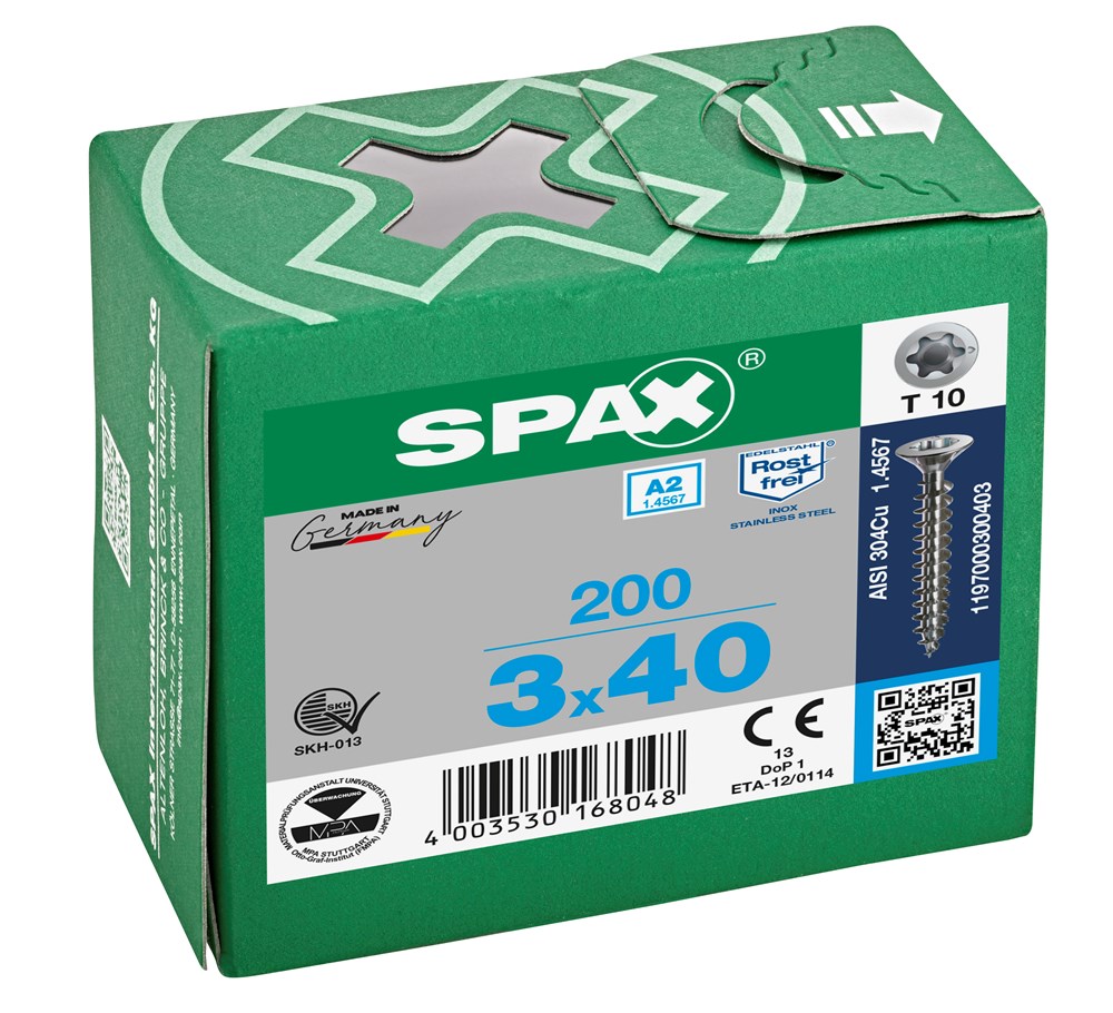 SPAX SPAANPLAATSCHROEF RVS/A2 PK TORX T10 VD 3X40