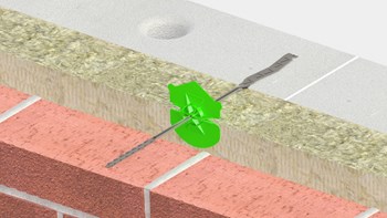 Kunststof klemschijf die over een rond spouwanker Ø 4 mm wordt geschoven om de isolatie(deken) blijvend op de juiste plek in de spouw te houden. De Uni-clip is uitgevoerd met een druppelvanger.