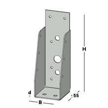 Balkdrager voor het verbinden van dwarsbalken rechtstreeks aan een muur. De balkdrager wordt via de gaten in de rug bevestigd. Hierna wordt een balk ingelegd die via de gaten in de zijkant van de balkdrager kan worden gefixeerd.