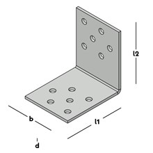 Montagehoek met schroefgaten, o.a. voor het versterken van lichte houten hoekconstructies.