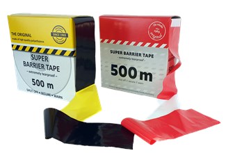 Hoogwaardige scheurvrije afzetband, leverbaar in rood/wit geblokt en geel/zwart geblokt.