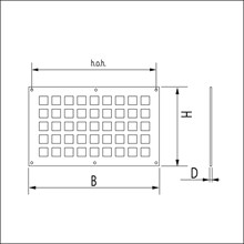 Ventilatieplaat, opbouw met vierkante perforatie 20 x 20mm. Bevestigingsgaten doorsnede Ø4mm.