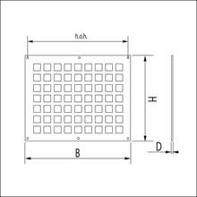 Ventilatieplaat, opbouw met vierkante perforatie 20 x 20mm. Bevestigingsgaten doorsnede Ø4mm.