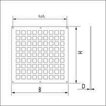Ventilatieplaat, opbouw met vierkante perforatie 20 x 20mm. Bevestigingsgaten doorsnede Ø4mm.