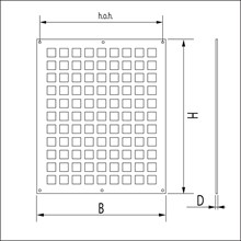Ventilatieplaat, opbouw met vierkante perforatie 20 x 20mm. Bevestigingsgaten doorsnede Ø4mm.