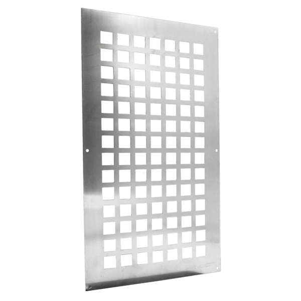 Ventilatieplaat, opbouw met vierkante perforatie 20 x 20mm. Bevestigingsgaten doorsnede Ø4mm.
