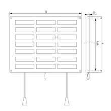 Kunststof schuifroosters met koord en schuif in het midden, inclusief schroeven.