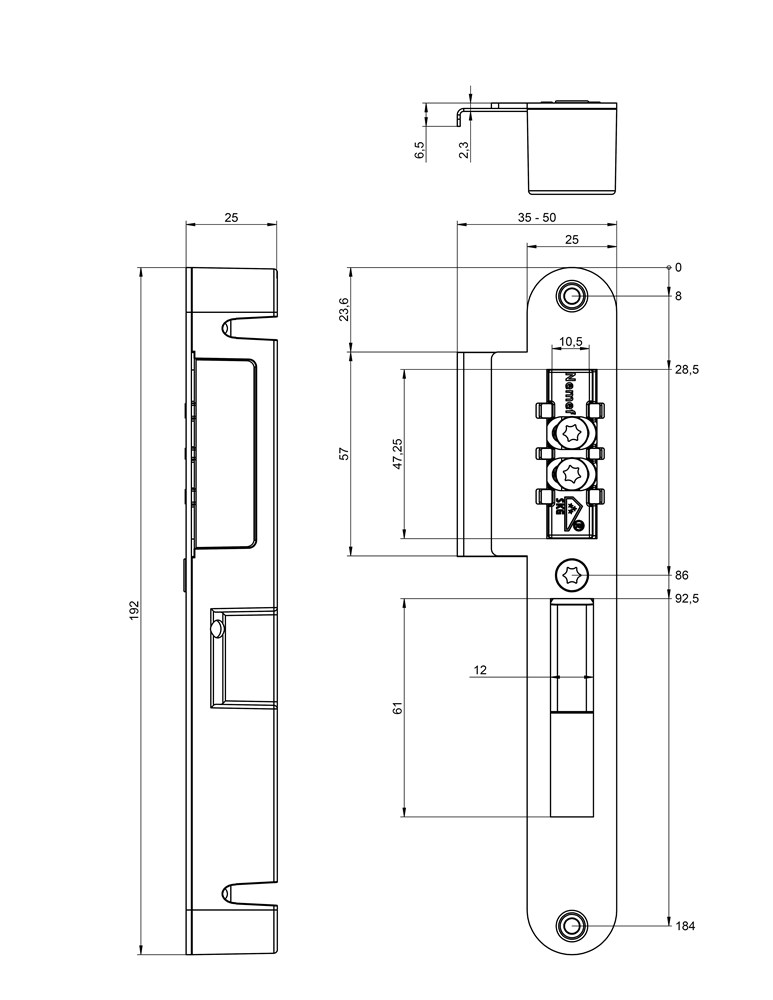 • Verkrijgbaar met sluitplaat korte lip (verstelbaar 35-50 mm)