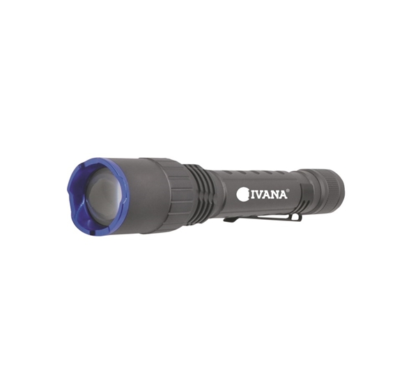 Deze zaklamp schijnt tot 140 meter ver en heeft 3 standen; high, low en strobe. Benodigde batterijen: 2xAA