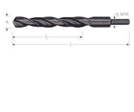 HSS-R Spiraalboor DIN 338, kort, type N, rolgewalste uitvoering, stoomontlaten, tophoek 118°, schacht afgedraaid naar ø10.
