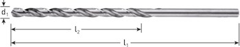 HSS-G Spiraalboor DIN 340, lang, type N, lang, geslepen uitvoering, tophoek 135°, >3,0 mm met splitpoint / kruisaanslijping (DIN 1412-C).