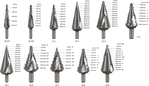 STAPPENBOOR (HSS) DIN 1412 (M2)              4-30 MM