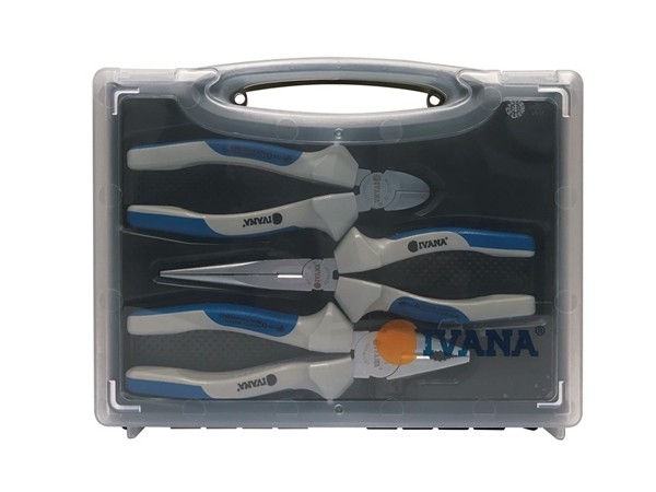 Deze tangenset bevat drie essentiële tangen: de Ivana combinatietang 180mm, de Ivana telefoontang recht 200mm en de Ivana zijsnijtang 160mm. Deze set is geschikt voor buigen, knippen en precisiewerk, en biedt een complete oplossing voor verschillende toepassingen.