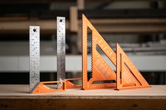 Wat deze schrijfhaken echt uniek maakt, zijn de etsen en gaten op hoeken van 10°, 15°, 22,5°, 30°, 45°, 50° en 60°, die ideaal zijn voor het afschuinen en het nauwkeurig framen van constructies. Daarnaast zijn er gaatjes om de 1 cm, waarmee u vloeiende en nauwkeurige potloodmarkeringen kunt maken, zonder de liniaal te verschuiven.